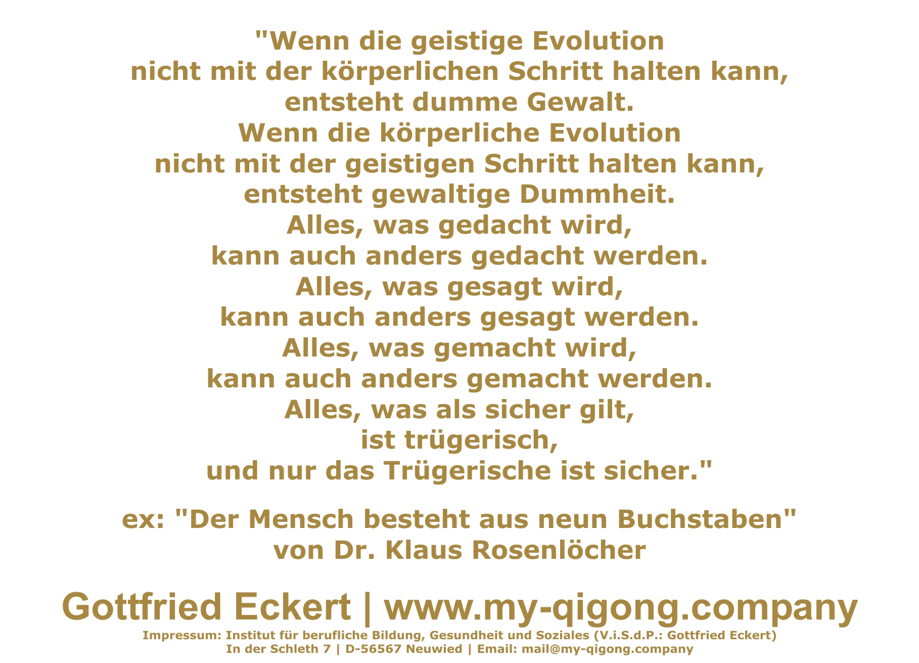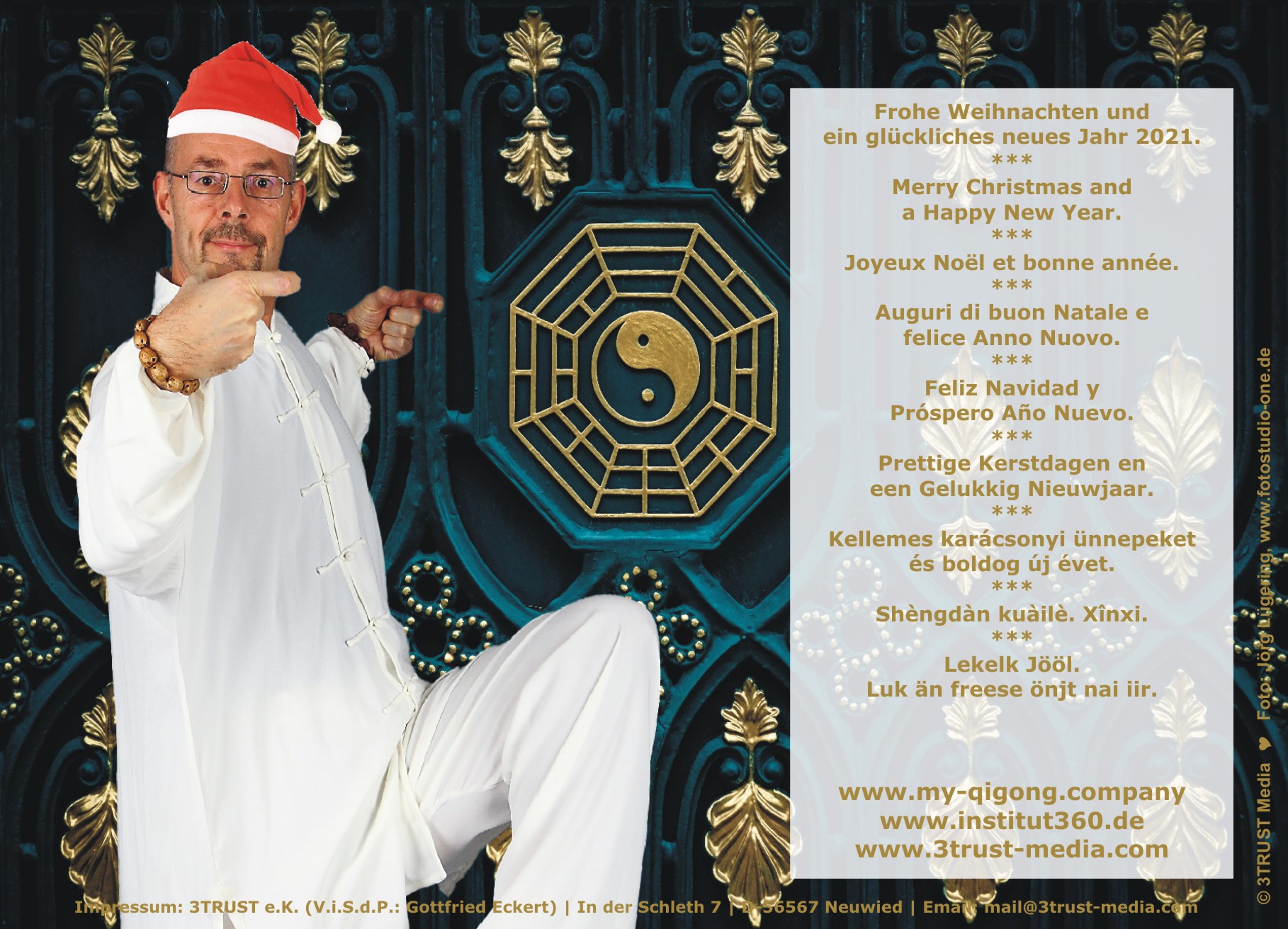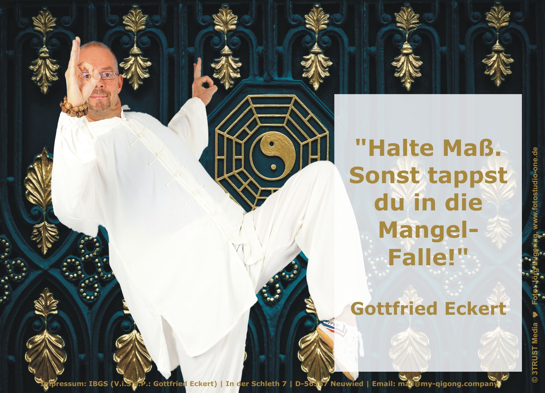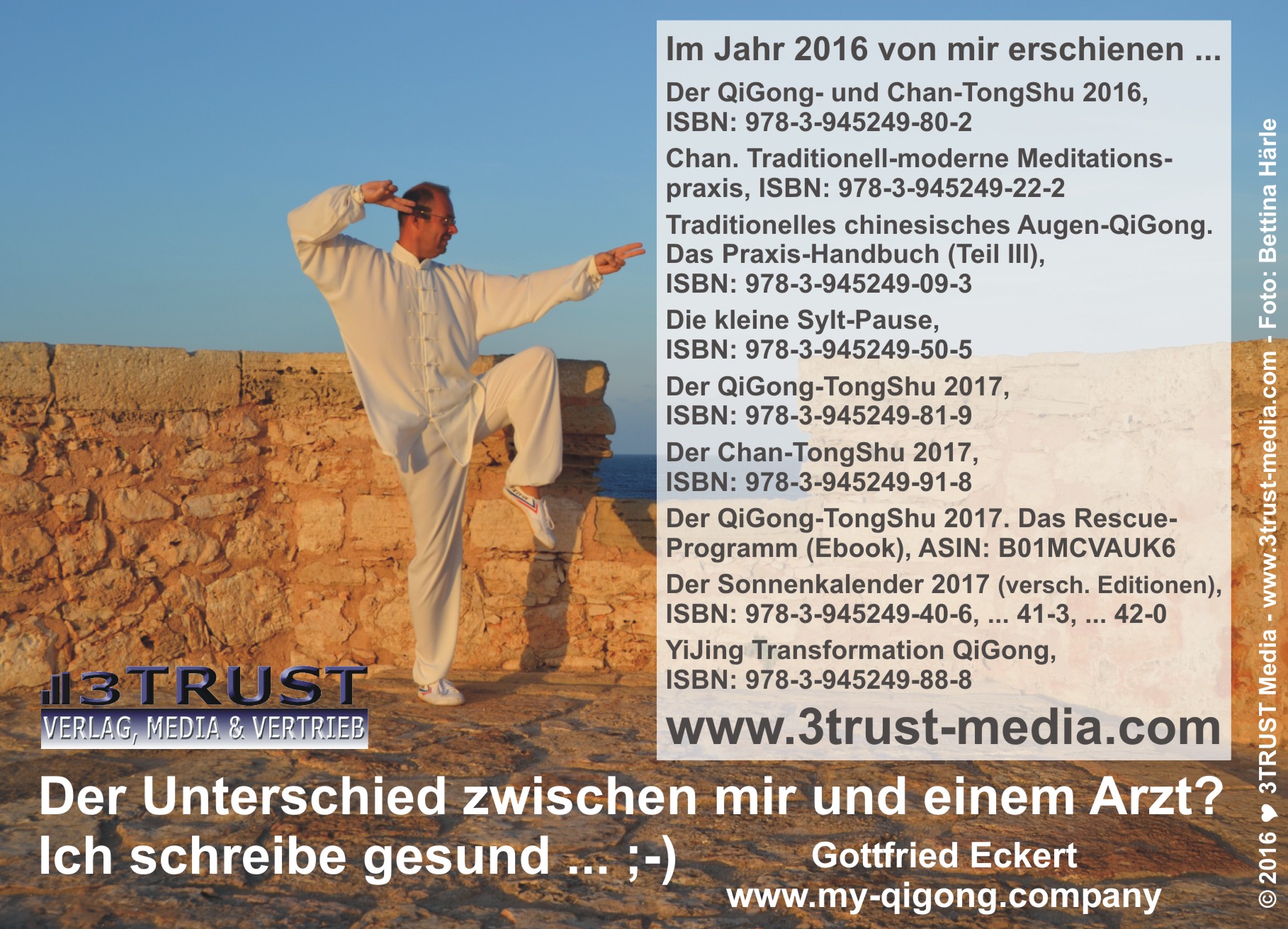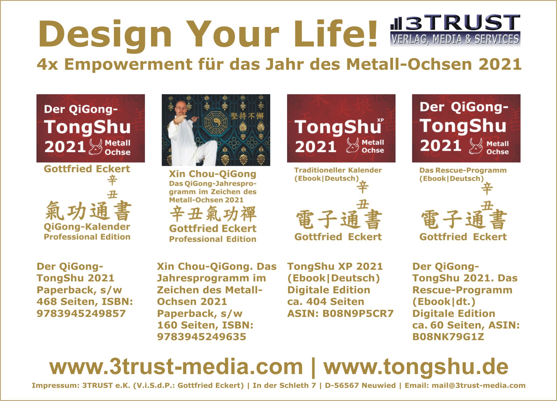 10.10.2024 | Neu erschienen ... WERBUNG Das QiGong-Brevier 2025. Mein Rescue-Programm (Ebook|Deutsch), Verlag: 3TRUST e.K., Autor: Gottfried Eckert, ASIN B0DJSDKDWQ, Elektronische Publikation, ca. 70 Seiten, Sprache: Deutsch Info |