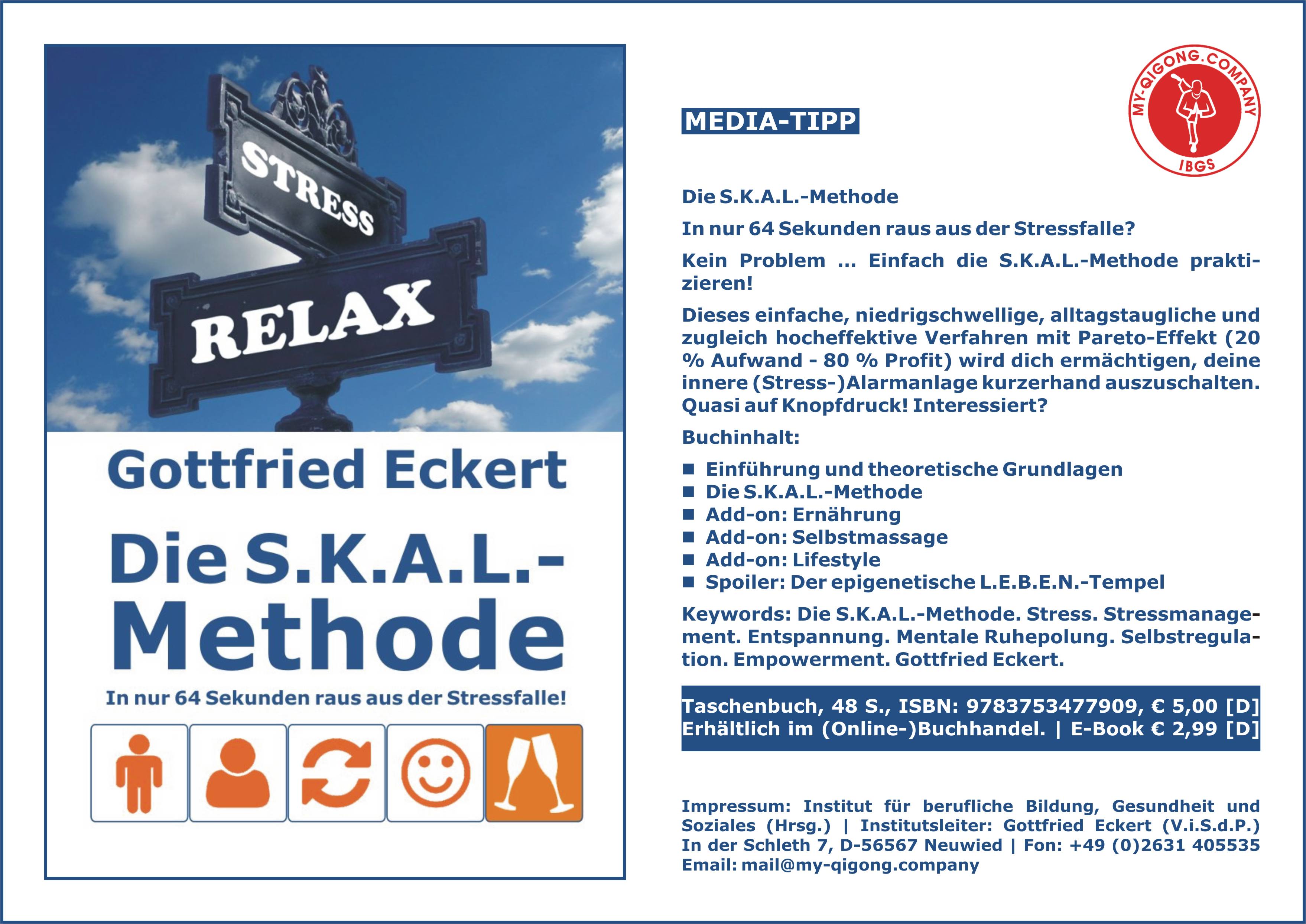 08.07.2025 | Neu als Ebook bei 3TRUST erschienen ... WERBUNG The S.K.A.L. Method. Out of the stress trap in just 64 seconds! English Edition. Publisher: 3TRUST e.K., In der Schleth 7, D-56567 Neuwied/Germany, Phone: +49 (0)2631 405535, Web: www.3trust-media.com, Email: mail@3trust-media.com. Author: Gottfried Eckert. ASIN: B0FH4T94F6. Electronic publication, 48 pages. Info |